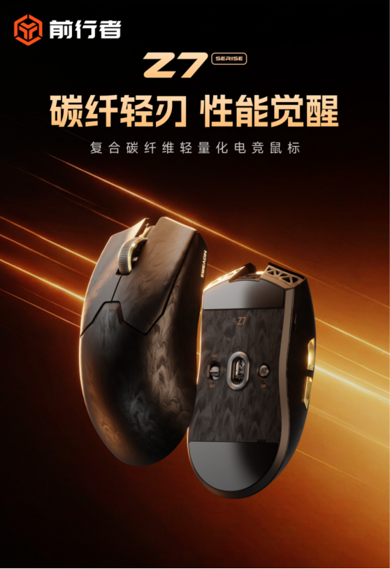 如果说前行者S9大师版是将旗舰芯片推向大众的先锋,那今天这款刚刚到手的Z7,则是在“材料”与“轻量化”上迈出了更极致的一步。复合碳纤维外壳、52克超轻机身、PAW3950传感器加双8K方案,当这些配置集中在一款首发379元起的鼠标上,它所呈现的,或许不只是“内卷”,而是一种全新的手感体验。